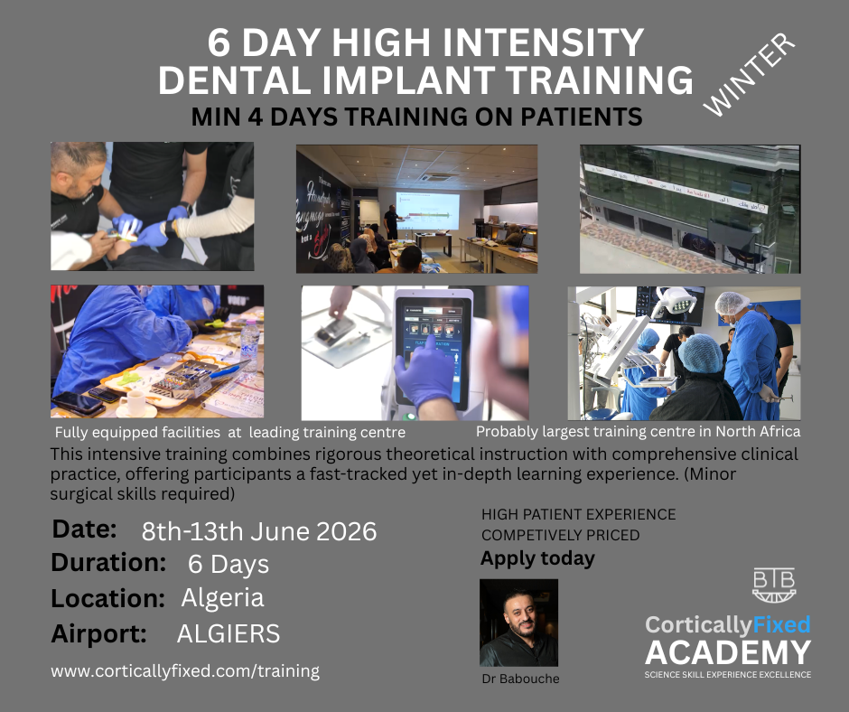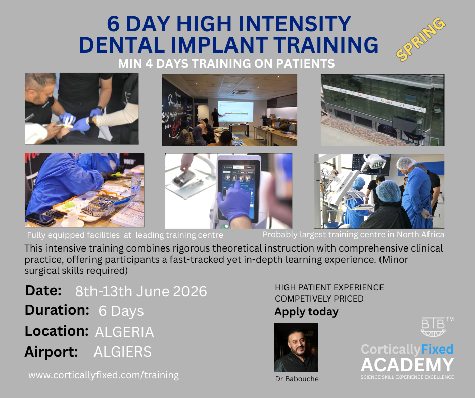 6 Day Intensive Dental Implant Training led by Dr Babouche & experts